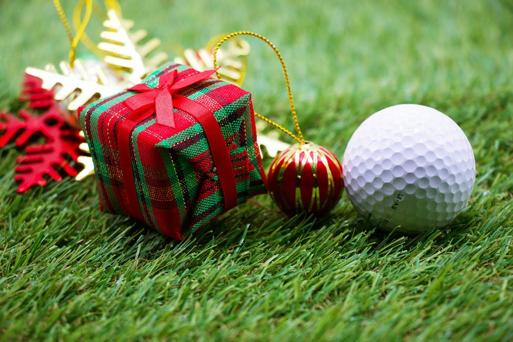 Golf ball with gift for Christmas and New year
